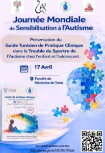 À l’occasion de la Journée Mondiale de Sensibilisation à l’Autisme, la Faculté de Médecine de Tunis accueillera un événement majeur pour la communauté médicale et éducative en Tunisie. Le 17 avril, une journée spéciale sera consacrée à la présentation officielle du tout nouveau Guide Tunisien de Pratique Clinique dans le Trouble du Spectre de l’Autisme (TSA) chez l’enfant et l’adolescent.